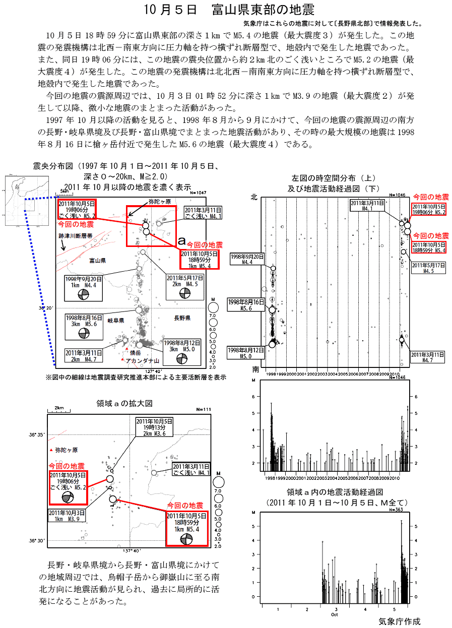 週刊地震情報 富山県を震源とする震度3の地震 18年12月23日 Biglobeニュース